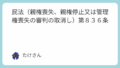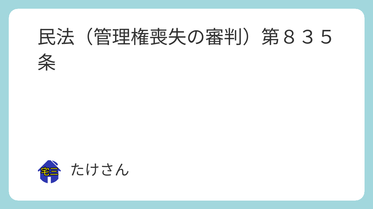 第八百三十五条 父又は母による管理権の行使が困難又は不適当であることにより子の利益を害するときは、家庭裁判所は、子、その親族、未成年後見人、未成年後見監督人又は検察官の請求により、その父又は母について、管理権喪失の審判をすることができる。