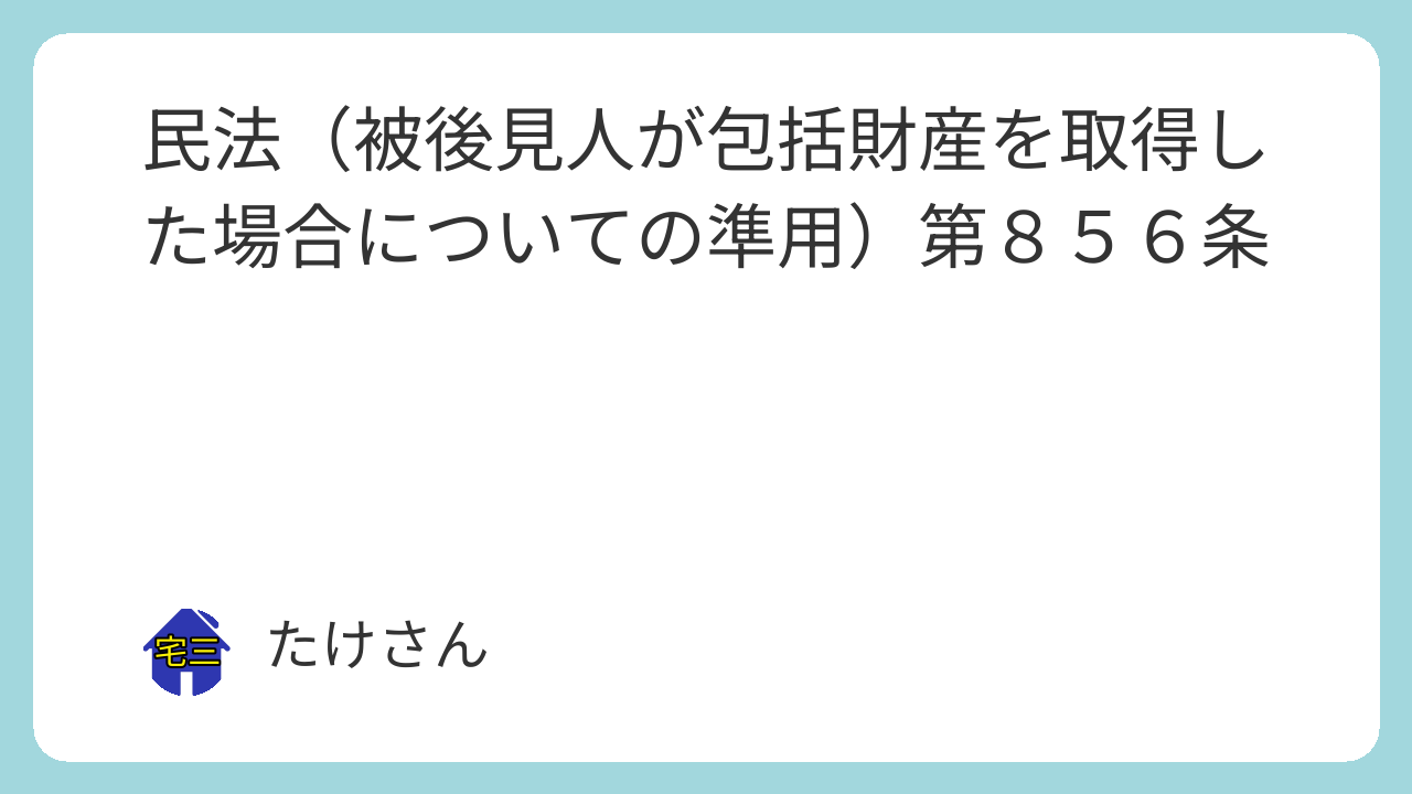 第八百五十六条 前三条の規定は、後見人が就職した後被後見人が包括財産を取得した場合について準用する。