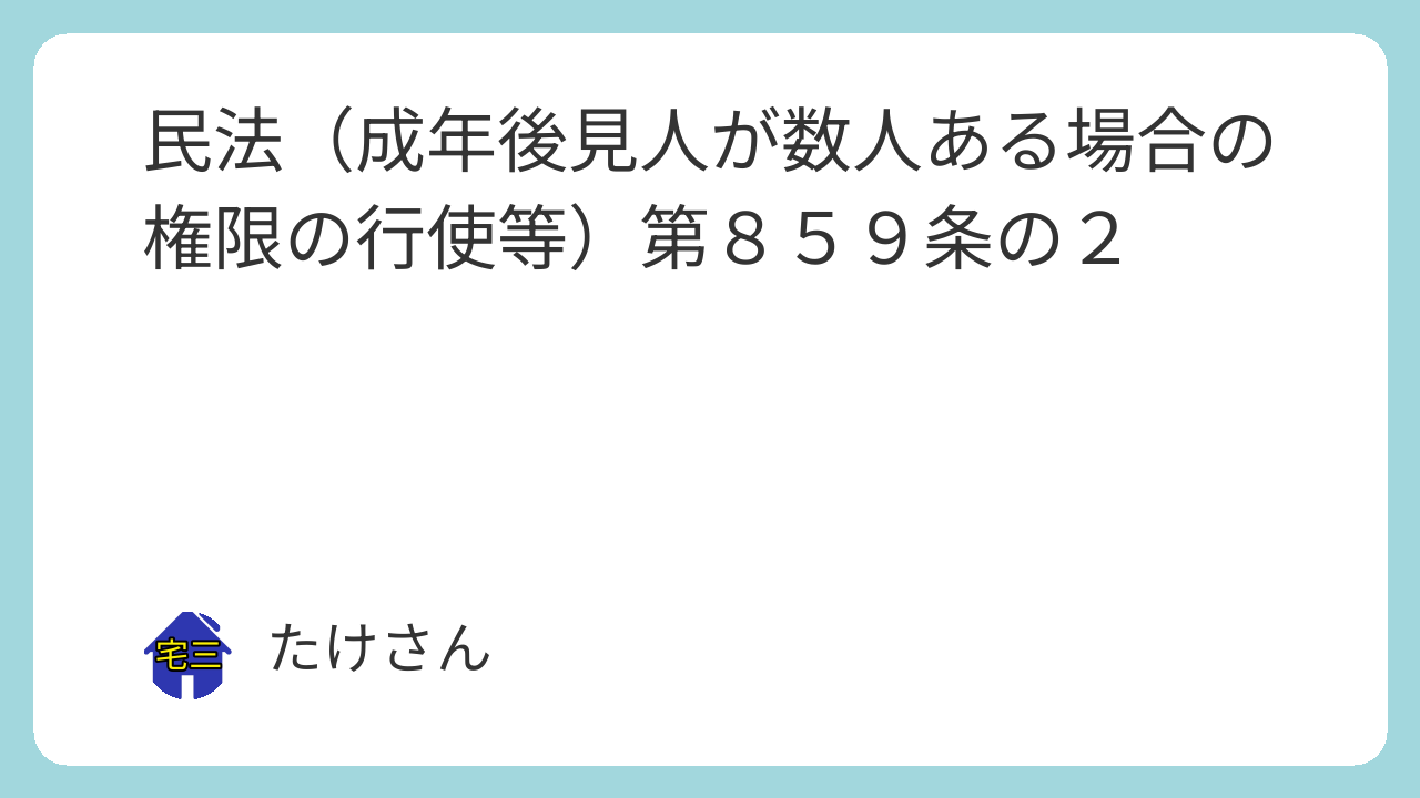 第859条の2 成年後見人が数人あるときは、家庭裁判所は、職権で、数人の成年後見人が、共同して又は事務を分掌して、その権限を行使すべきことを定めることができる。