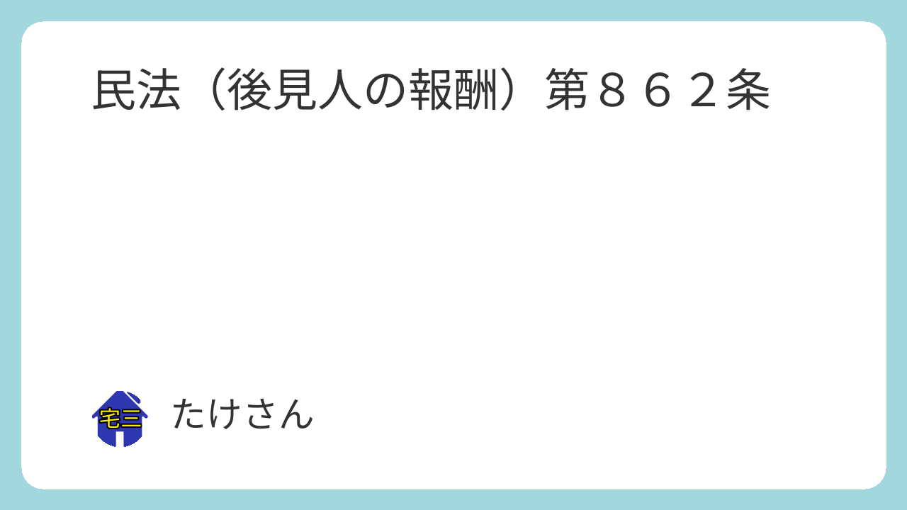 第862条 家庭裁判所は、後見人及び被後見人の資力その他の事情によって、被後見人の財産の中から、相当な報酬を後見人に与えることができる。