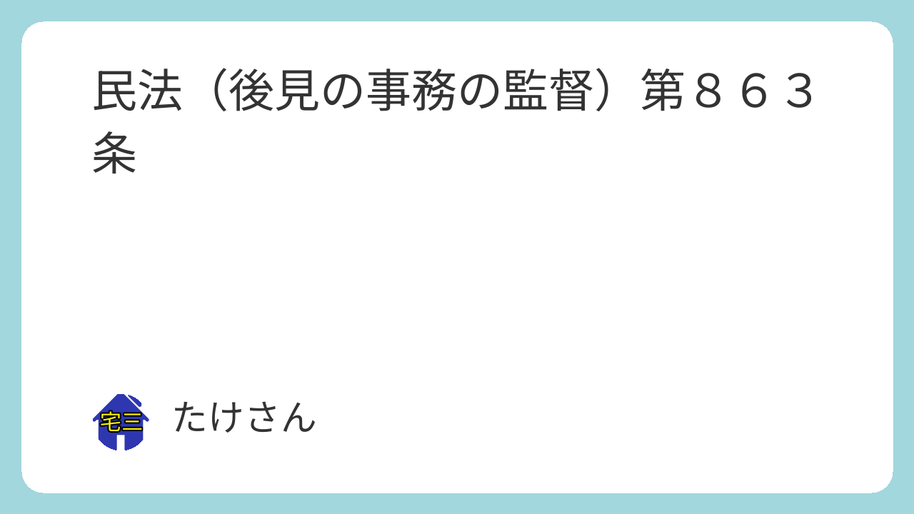 第863条 後見監督人又は家庭裁判所は、いつでも、後見人に対し後見の事務の報告若しくは財産の目録の提出を求め、又は後見の事務若しくは被後見人の財産の状況を調査することができる。