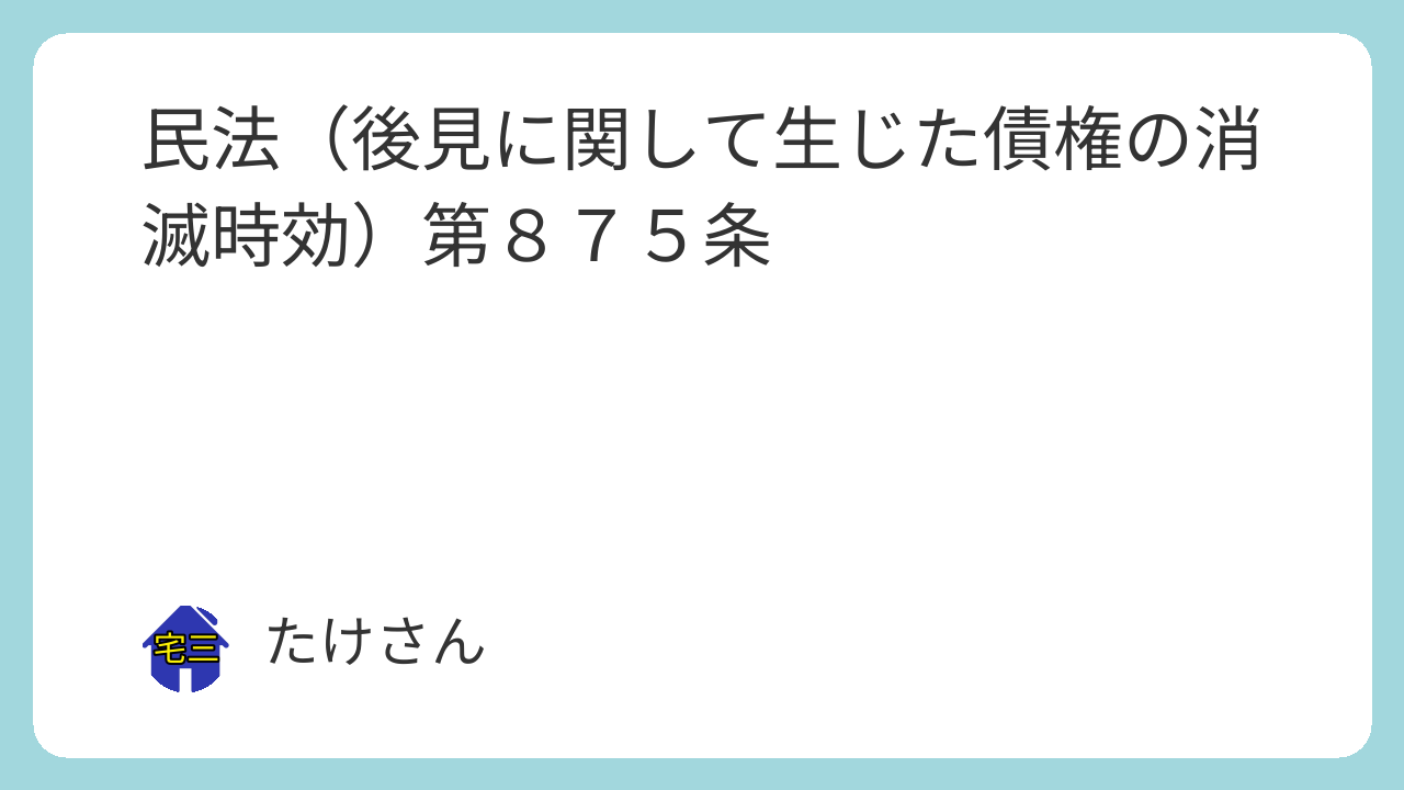 第875条 第832条(財産の管理について生じた親子間の債権の消滅時効)の規定は、後見人又は後見監督人と被後見人との間において後見に関して生じた債権の消滅時効について準用する。