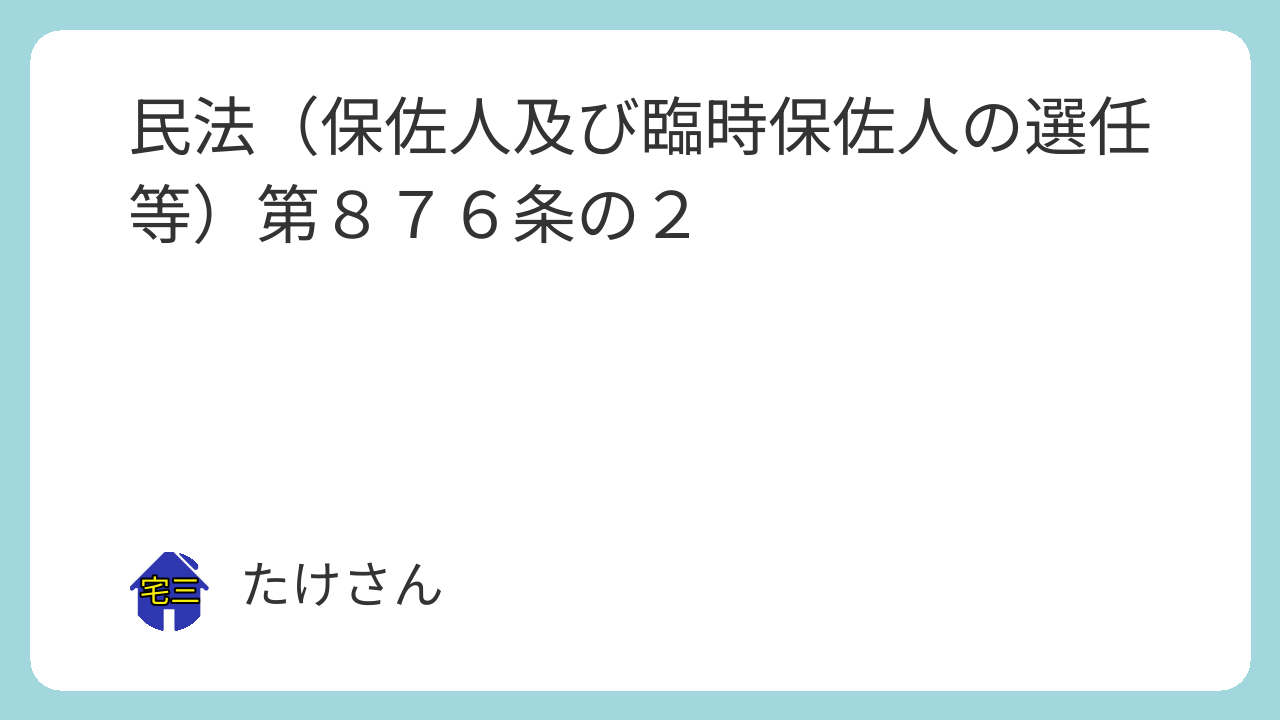 第876条の2 家庭裁判所は、保佐開始の審判をするときは、職権で、保佐人を選任する。