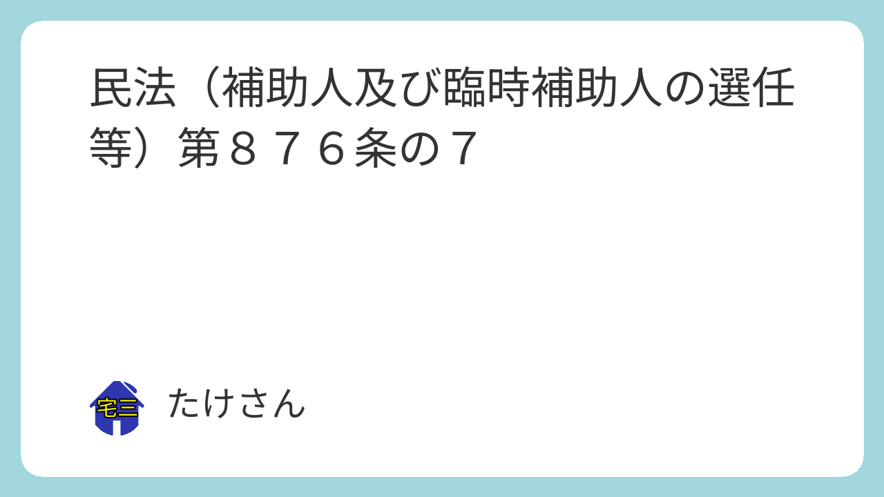 第八百七十六条の七 家庭裁判所は、補助開始の審判をするときは、職権で、補助人を選任する。