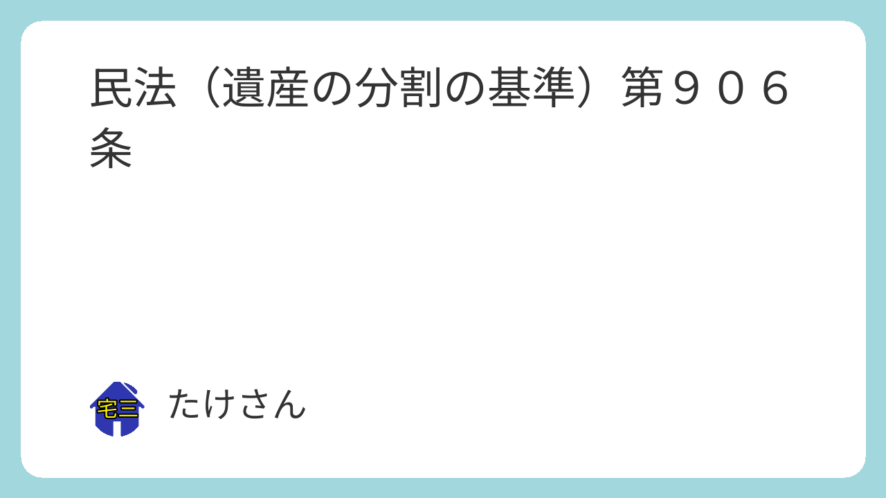 第九百六条 遺産の分割は、遺産に属する物又は権利の種類及び性質、各相続人の年齢、職業、心身の状態及び生活の状況その他一切の事情を考慮してこれをする。