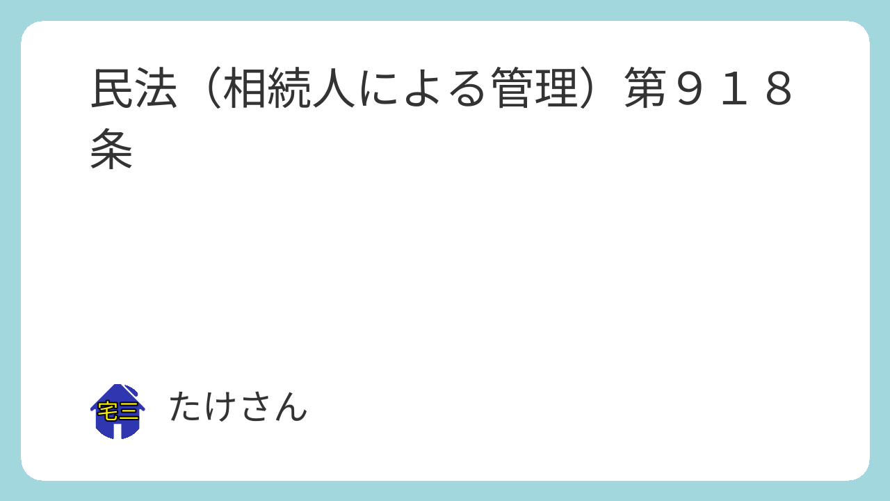 第九百十八条 相続人は、その固有財産におけるのと同一の注意をもって、相続財産を管理しなければならない。ただし、相続の承認又は放棄をしたときは、この限りでない。