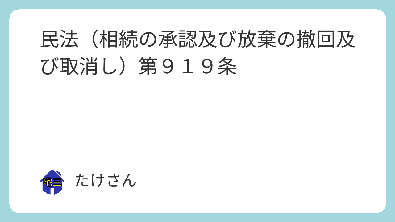 第九百十九条 相続の承認及び放棄は、第九百十五条第一項の期間内でも、撤回することができない。