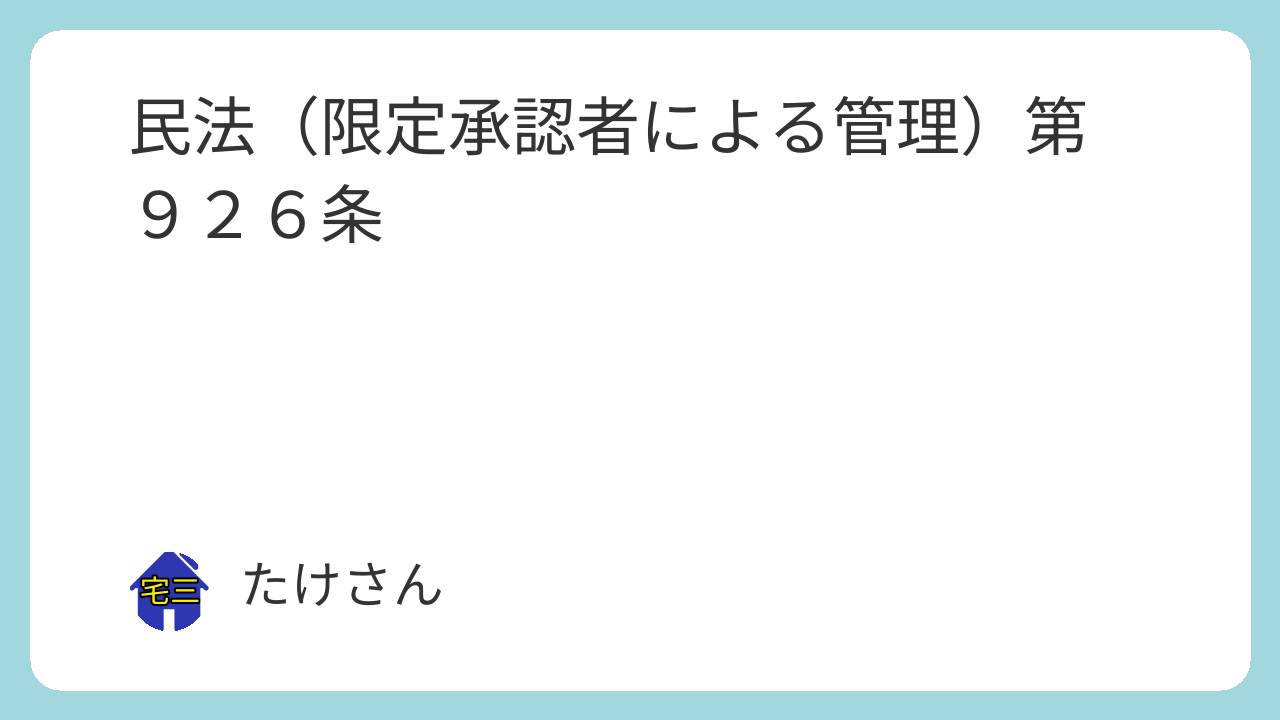 第926条 限定承認者は、その固有財産におけるのと同一の注意をもって、相続財産の管理を継続しなければならない。
