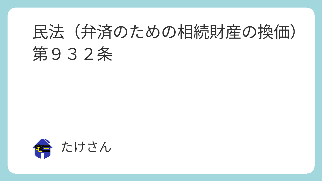 第九百三十二条 前三条の規定に従って弁済をするにつき相続財産を売却する必要があるときは、限定承認者は、これを競売に付さなければならない。ただし、家庭裁判所が選任した鑑定人の評価に従い相続財産の全部又は一部の価額を弁済して、その競売を止めることができる。