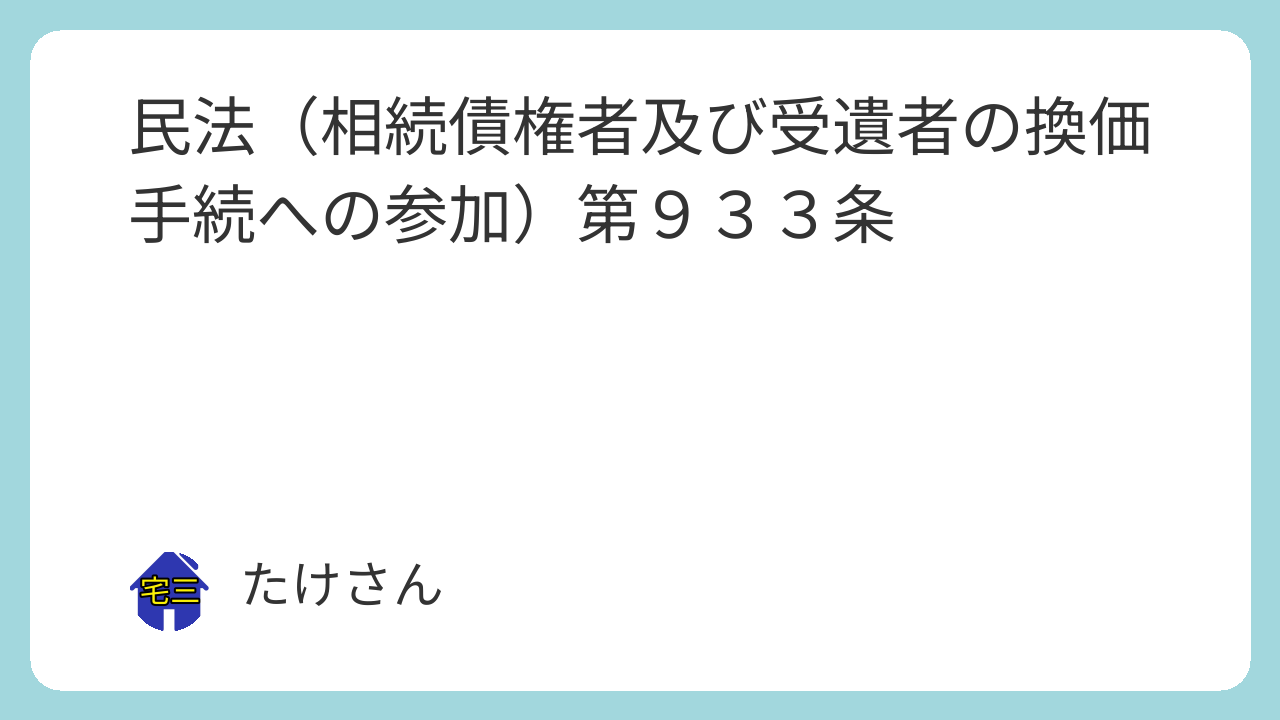 第九百三十三条 相続債権者及び受遺者は、自己の費用で、相続財産の競売又は鑑定に参加することができる。この場合においては、第二百六十条第二項の規定を準用する。