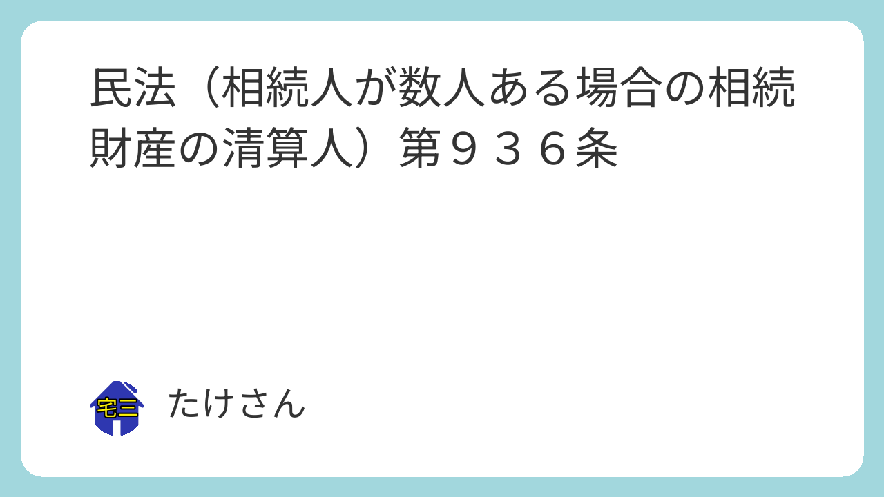 第九百三十六条 相続人が数人ある場合には、家庭裁判所は、相続人の中から、相続財産の清算人を選任しなければならない。