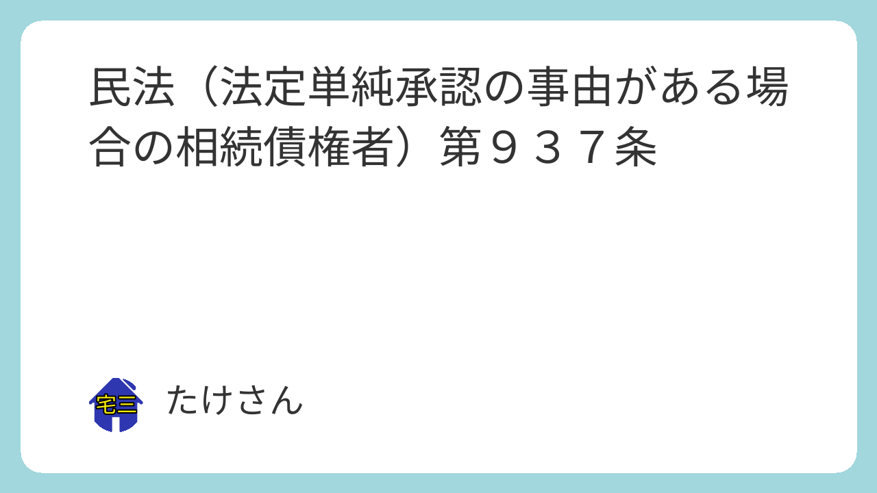 第937条 限定承認をした共同相続人の一人又は数人について第921条(法定単純承認)第一号又は第三号に掲げる事由があるときは、相続債権者は、相続財産をもって弁済を受けることができなかった債権額について、当該共同相続人に対し、その相続分に応じて権利を行使することができる。