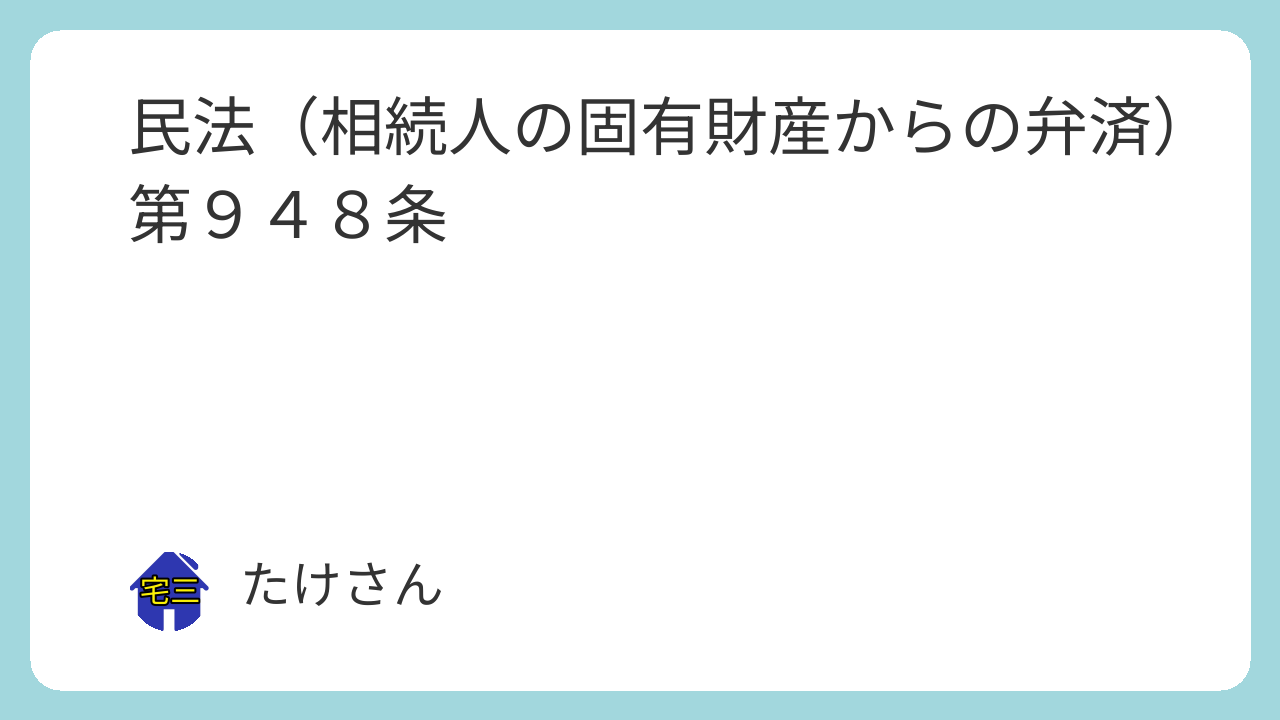 第九百四十八条 財産分離の請求をした者及び配当加入の申出をした者は、相続財産をもって全部の弁済を受けることができなかった場合に限り、相続人の固有財産についてその権利を行使することができる。この場合においては、相続人の債権者は、その者に先立って弁済を受けることができる。