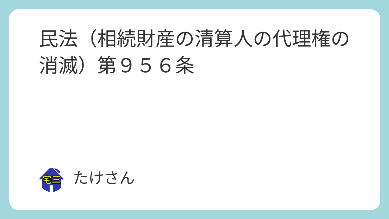 第九百五十六条 相続財産の清算人の代理権は、相続人が相続の承認をした時に消滅する。