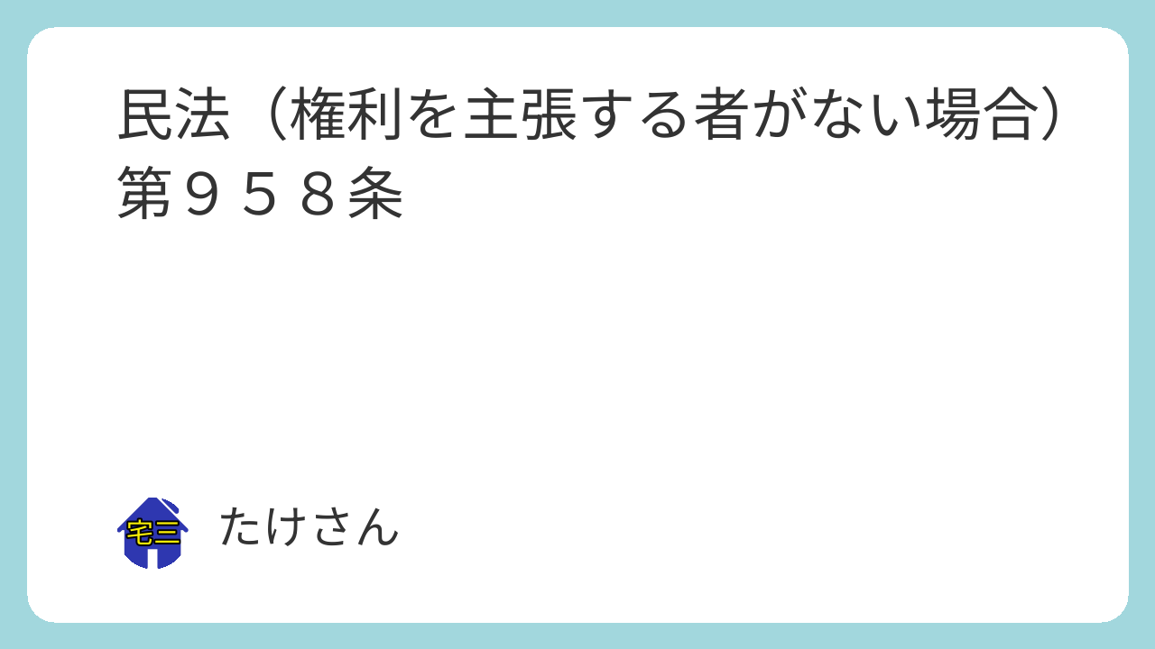 第九百五十八条 第九百五十二条第二項の期間内に相続人としての権利を主張する者がないときは、相続人並びに相続財産の清算人に知れなかった相続債権者及び受遺者は、その権利を行使することができない。