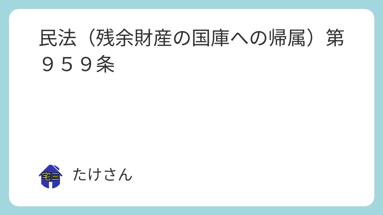 第九百五十九条 前条の規定により処分されなかった相続財産は、国庫に帰属する。この場合においては、第九百五十六条第二項の規定を準用する。