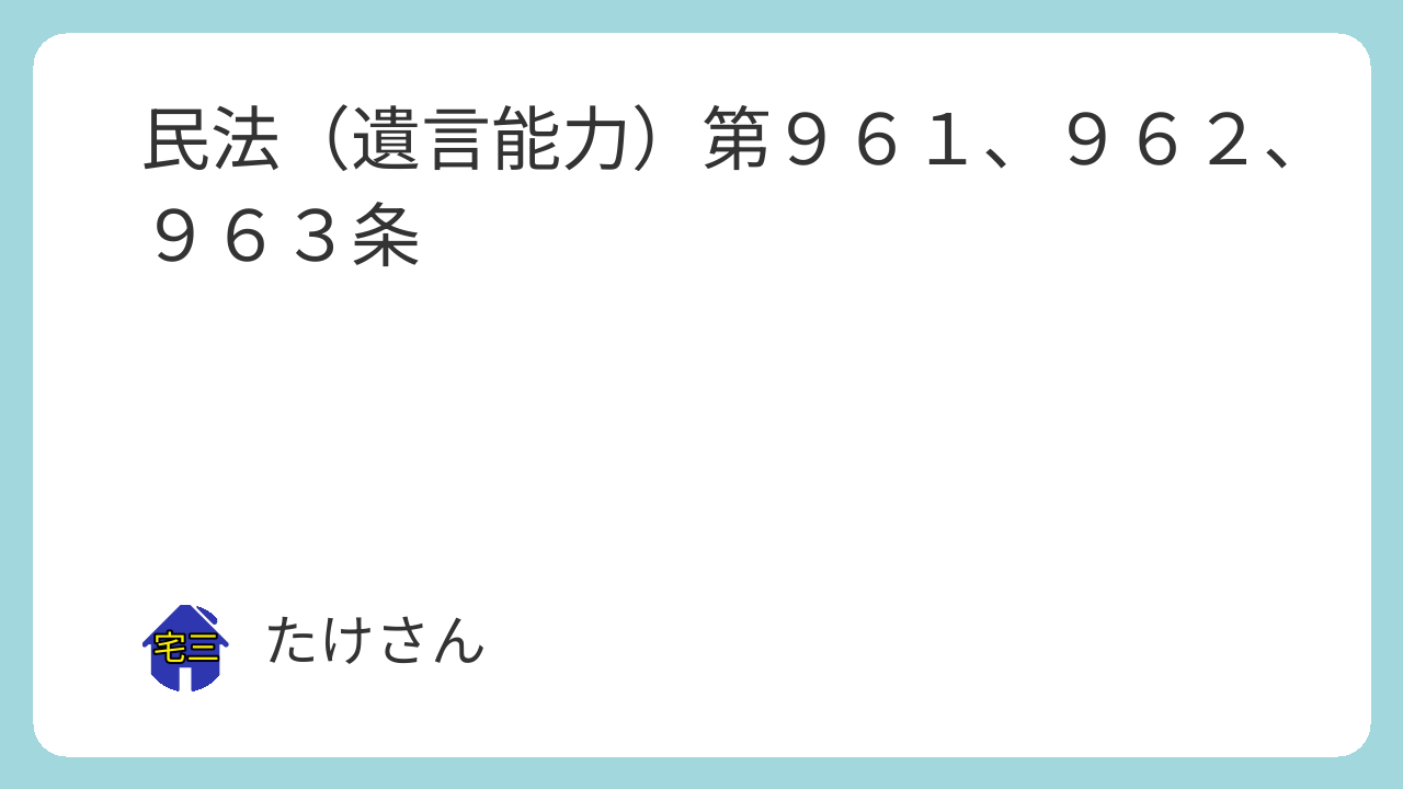 第九百六十三条 遺言者は、遺言をする時においてその能力を有しなければならない。