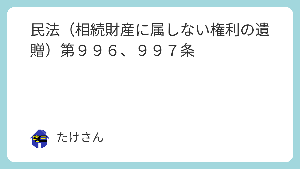 第996条 遺贈は、その目的である権利が遺言者の死亡の時において相続財産に属しなかったときは、その効力を生じない。