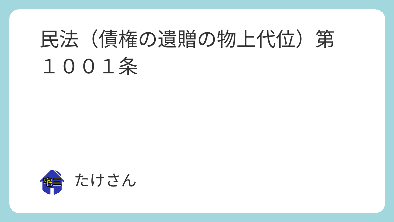 第千一条 債権を遺贈の目的とした場合において、遺言者が弁済を受け、かつ、その受け取った物がなお相続財産中に在るときは、その物を遺贈の目的としたものと推定する。