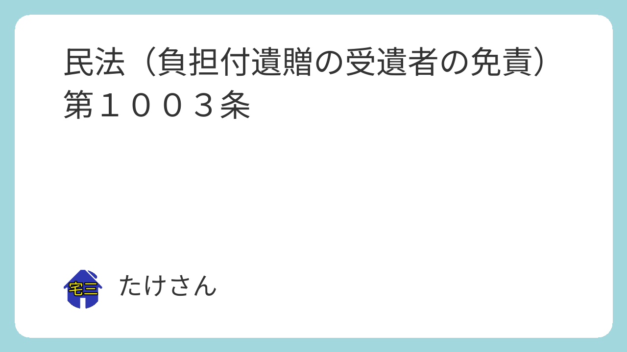 第千三条 負担付遺贈の目的の価額が相続の限定承認又は遺留分回復の訴えによって減少したときは、受遺者は、その減少の割合に応じて、その負担した義務を免れる。ただし、遺言者がその遺言に別段の意思を表示したときは、その意思に従う。