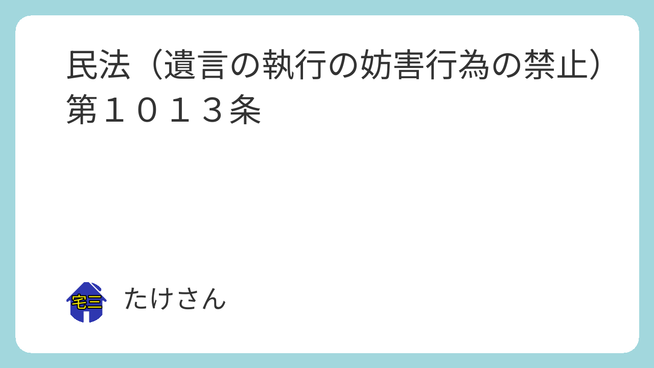 第1013条 遺言執行者がある場合には、相続人は、相続財産の処分その他遺言の執行を妨げるべき行為をすることができない。