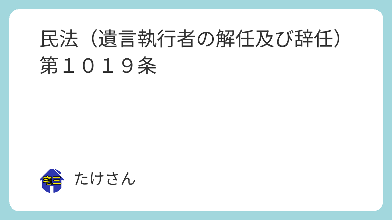 第千十九条 遺言執行者がその任務を怠ったときその他正当な事由があるときは、利害関係人は、その解任を家庭裁判所に請求することができる。