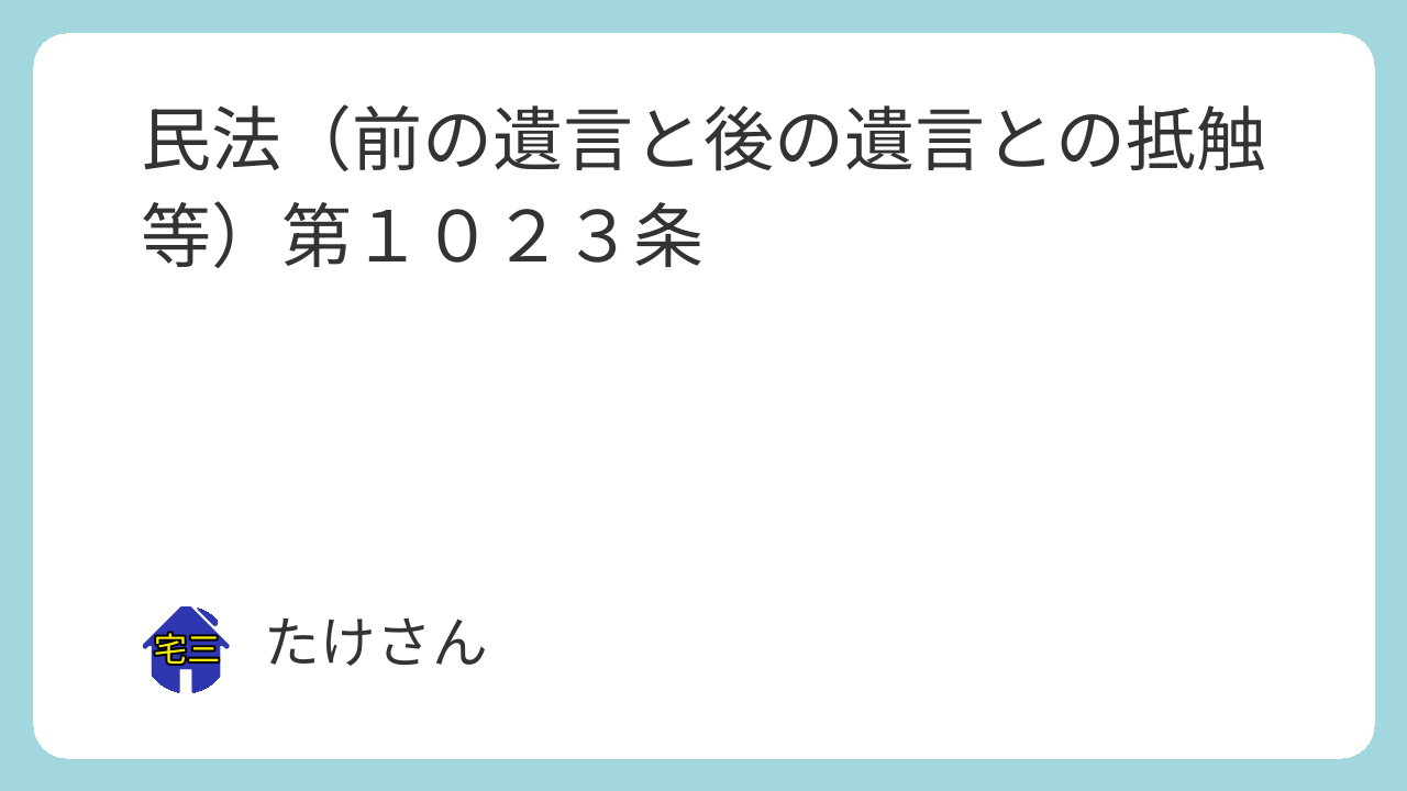 第千二十三条 前の遺言が後の遺言と抵触するときは、その抵触する部分については、後の遺言で前の遺言を撤回したものとみなす。