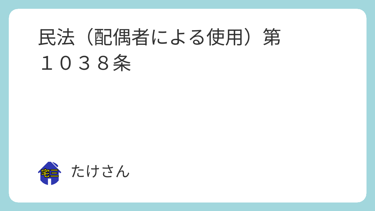 第1038条 配偶者(配偶者短期居住権を有する配偶者に限る。以下この節において同じ。)は、従前の用法に従い、善良な管理者の注意をもって、居住建物の使用をしなければならない。