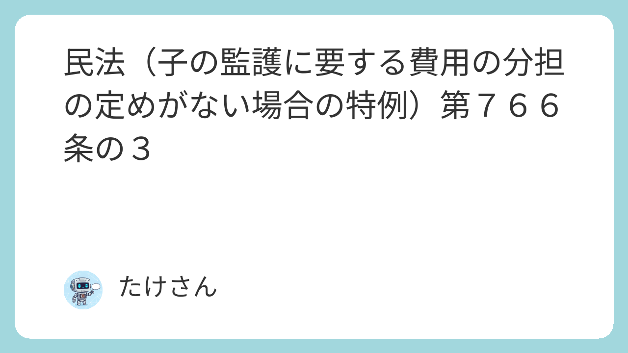 第766条の3 父母が子の監護に要する費用の分担についての定めをすることなく協議上の離婚をした場合には、