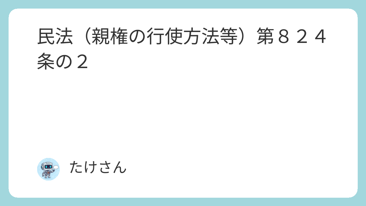 2 父母は、その双方が親権者であるときであっても、前項本文の規定にかかわらず、監護及び教育に関する日常の行為に係る親権の行使を単独ですることができる。