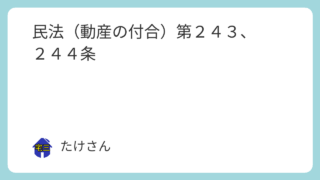 民法 民法(動産の付合)第243、244条 (動産の付合)第二百四十三条 所有者を異にする数個の動産が、付合により、損傷しなければ分離することができなくなったときは、その合成物の所有権は、主たる動産の所有者に帰属する。分離するのに過分の費用を要するときも、同様とする。第二百四十四条 ... 2025.09.11 民法