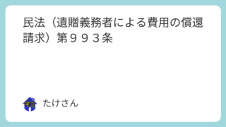 民法 民法(遺贈義務者による費用の償還請求)第993条 (遺贈義務者による費用の償還請求)第九百九十三条 第二百九十九条の規定は、遺贈義務者が遺言者の死亡後に遺贈の目的物について費用を支出した場合について準用する。2 果実を収取するために支出した通常の必要費は、果実の価格を超えない限度で、その償... 2025.09.25 民法