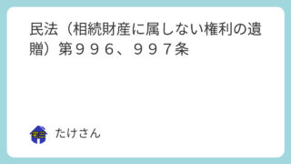 民法 民法(相続財産に属しない権利の遺贈)第996、997条 (相続財産に属しない権利の遺贈)第996条 遺贈は、その目的である権利が遺言者の死亡の時において相続財産に属しなかったときは、その効力を生じない。ただし、その権利が相続財産に属するかどうかにかかわらず、これを遺贈の目的としたものと認められる... 2025.09.25 民法